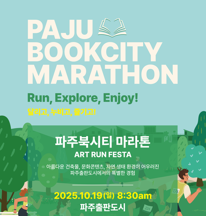 ‘2025 파주북시티 마라톤’ 대회 오는 10월 19일 경기도 파주 출판도시에서 ‘2025 파주북시티 마라톤’ 대회가 열린다. 이 대회는 출판도시 명명 30주년을 기념하기 위해 기획됐다. 주최측인 (사)파주출판문화정보국가산업단지 입주기업체협의회 정병철 회장은 “이번 대회는 책 향기 가득한 가을,자연 생태와 건축미가 살아 숨 쉬는 출판도시를 달리는 특별한 마라톤”이라고 소개했다.