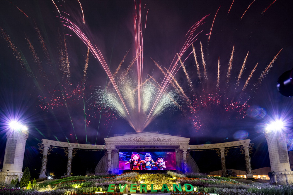 에버랜드가 연말까지 매일 밤 포시즌스가든에서 '케이팝 데몬 헌터스 싱어롱 불꽃쇼'를 선보인다. 넷플릭스 애니메이션 '케이팝 데몬 헌터스' 영상과 OST가 초대형 발광다이오드(LED) 스크린,불꽃,특수효과,음악으로 어우러져 관람객에게 압도적인 몰입감을 전한다.  에버랜드