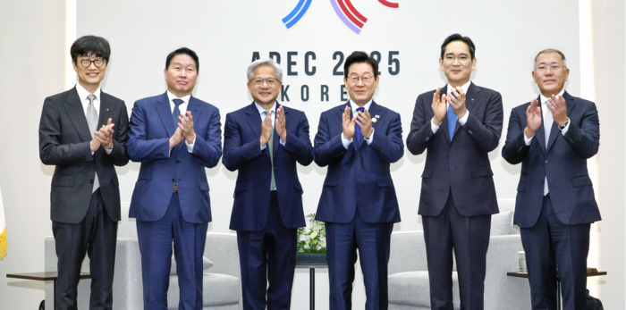 이재명 대통령이 31일 경북 경주화백컨벤션센터(HICO)에서 젠슨 황 엔비디아(NVIDIA) 대표를 접견하며 참석자들과 기념촬영을 하고 있다. 왼쪽부터 이해진 네이버 이사회 의장,최태원 SK그룹 회장,젠슨 황 엔비디아(NVIDIA) 대표,이 대통령,이재용 삼성전자 회장,정의선 현대자동차그룹 회장. [김호영 기자] 엔비디아가 정부와 국내 4개 기업(삼성전자·SK그룹·현대차그룹·네이버클라우드)에 총 26만장의 그래픽처리장치(GPU)를 투입하기로 했다. 이를 통해 한국은 전 세계적으로 품귀 현상을 빚고 있는 GPU를 우선으로 받게 됐다.