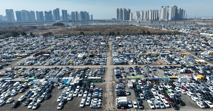 중동 사태 영향으로 중고차 전체 수출 중 약 3분의 1을 차지하는 중동 지역 중고차 수출에도 큰 차질이 빚어지는 가운데 인천시 연수구 옥련동 옛 송도유원지의 중고차 수출단지에 차량들이 빼곡히 주차되어 있다. [연합뉴스] 정부도 상황을 엄중하게 보고 대응 수위를 높이고 있다. 국제유가 상승과 지정학적 불확실성이 물가와 민생 부담을 키우고 경기 하방 위험을 확대시킬 수 있다는 판단에서다.